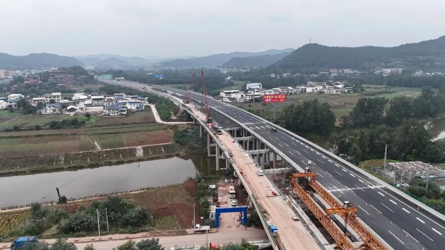 在大英县隆盛镇,成南高速郪江二桥的施工现场一派繁忙。这座全长300米、共10跨的桥梁,是遂宁段施工难度最大的控制性工程。据介绍,该桥采用原位扩建方式,需将原桥上部结构拆除后,把混凝土梁体改建为钢混结合梁体,最终拓宽为双向八车道。目前,桥梁建设采取边拆边建模式,已顺利完成3跨钢梁新建。