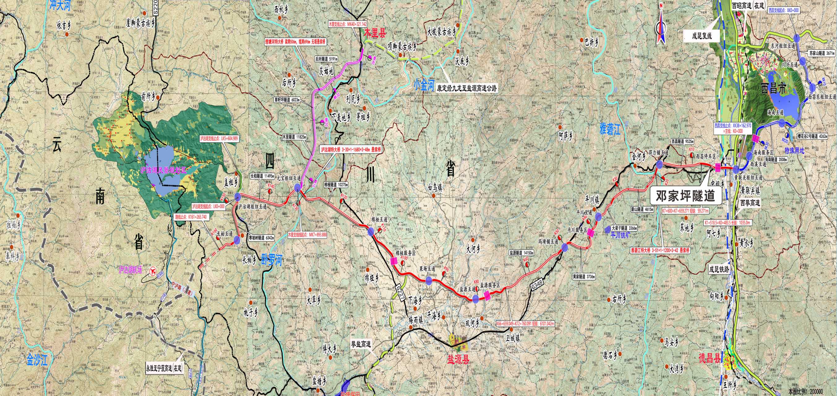 作为国家交通强国“十四五”重点项目,西香高速是G7611国家高速公路都匀至香格里拉的重要组成路段,也是连接川滇贵三省的重要横向通道和大香格里拉旅游环线的重要组成部分。项目由蜀道集团投建,总长233.132公里,其中主线长达155.49公里,另设西昌、木里、泸沽湖三条支线,全线采用双向四车道高速公路标准建设,设计时速80公里,共有隧道32座、桥梁131座,桥隧比73.4%,概算总投资587.38亿元,是目前四川省内由单个项目公司管理、单体投资建设体量最大的高速公路建设项目。西香高速建成通车后,将结束盐源县、木里县不通高速公路的历史,对改善凉山彝族自治州民族地区交通运输条件、巩固拓展脱贫攻坚成果、促进区域优势资源开发与经济社会高质量发展具有里程碑意义。