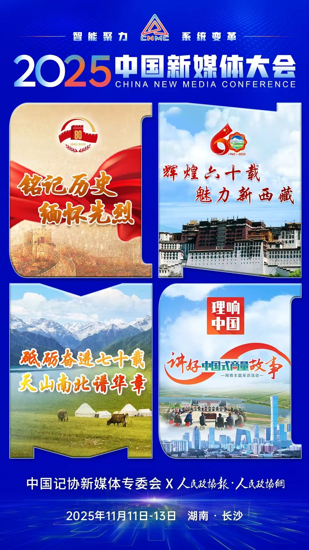 2025中国新媒体大会将于11日至13日在湖南长沙召开,中国记协新媒体专业委员会各成员单位纷纷推出“联名海报”为大会预热。