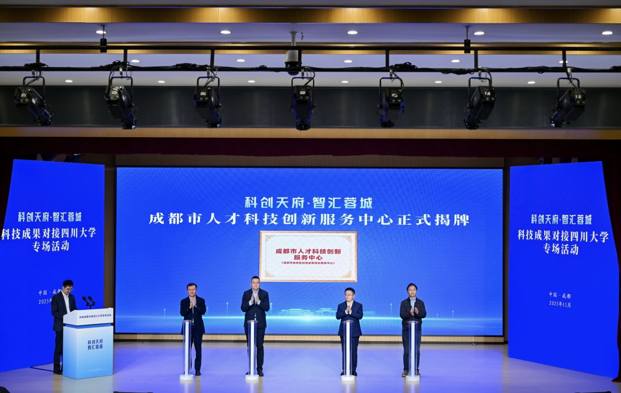 科技是第一生产力、人才是第一资源、创新是第一动力。为吸引更多人才在蓉创新创业,促进更多科技成果就地就近转化,活动现场,成都人才发展集团与四川大学科技园等单位共建的“成都市人才科技创新服务中心”正式揭牌,中心整合高校院所、人才和科技服务机构等资源和力量,打造人才创新创业成果评估论证、转化服务等一体化平台。作为校地合作重点项目──面向新经济技术交叉与转化中心也现场启用。该中心聚焦人工智能、智能终端、医药健康等新经济领域,通过多学科交叉融合,打通从实验室到市场的“最后一公里”。它的启用,标志着校地合作又迈出了崭新的一步,将为科技成果转化提供更加有力的支撑。