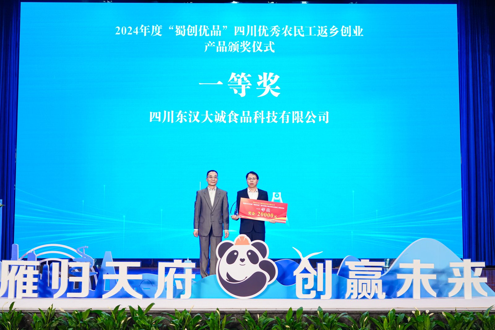 在县(区)返乡入乡创业投资推介环节,宜宾市翠屏区、达州市渠县分别就当地产业发展优势与合作机遇作了精彩推介。随后,绵竹市清平镇文旅项目、旺苍县退役光伏组件循环利用项目、大英县日化产品、普格县高原山茶油等4个优质返乡创业项目(产品)依次登台推介,充分展示四川返乡创业项目(产品)的多元形态与创新活力。现场还举办了2024年“蜀创优品”四川农民工返乡创业成果线上展销活动颁奖仪式,四川东汉大诚食品科技有限公司、四川卓商众合科技有限公司、攀枝花四喜农业发展有限责任公司等10家企业获奖,并在创业成果交流区进行了展示宣传。