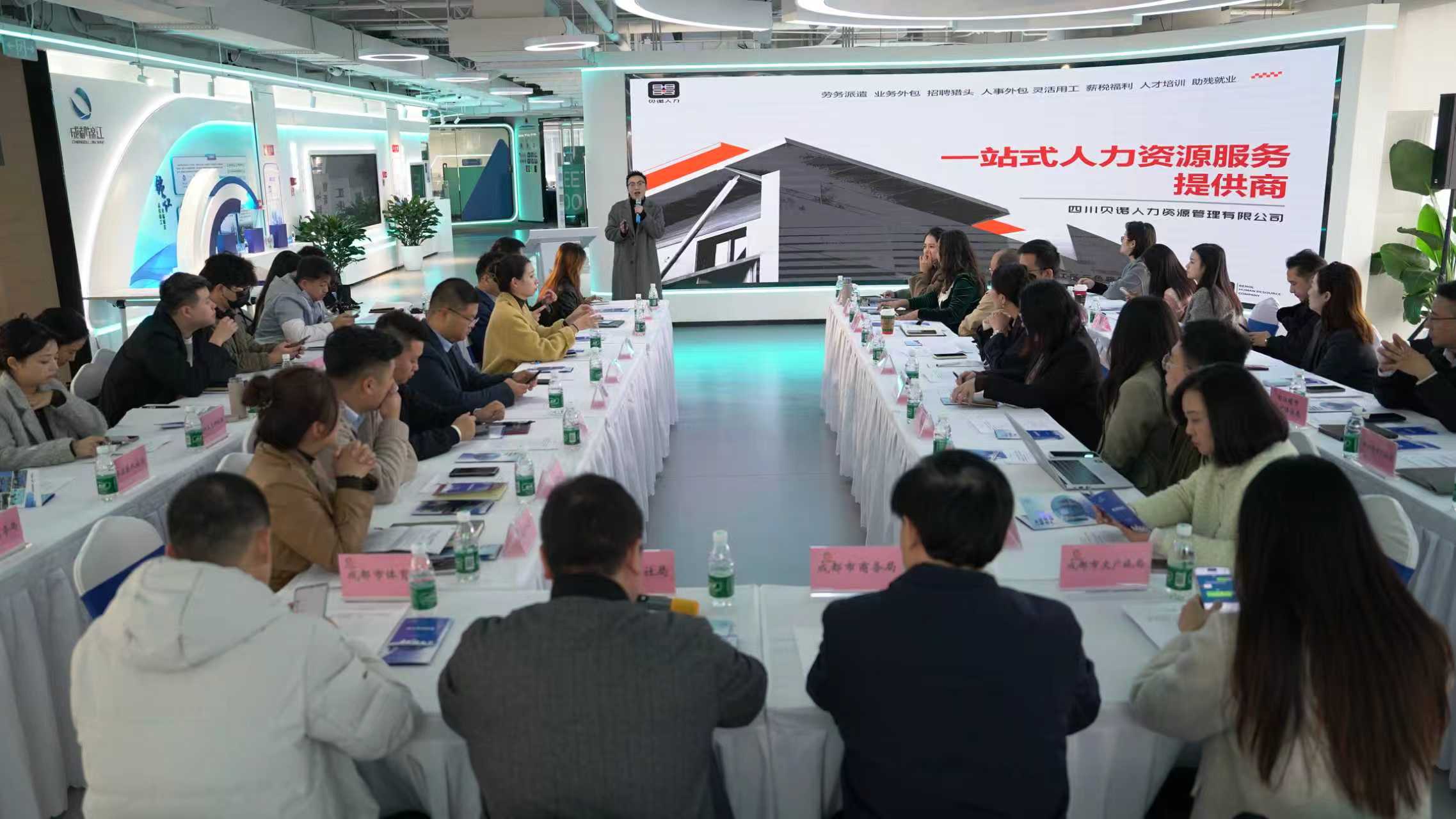 会上,成都市商务局、市文化广电旅游局、市体育局分别介绍了全市商务商贸、文旅、体育产业发展现状及支持政策,为企业与机构合作指明方向。成都市人社局介绍了全市人力资源服务业发展情况,目前全市市场化人力资源服务机构达3000余家,建成多级人力资源服务产业园体系,通过“嵌入服务”“延伸服务”等多元模式,持续优化产业人才服务供给。锦江区人社局重点推介了锦江数智人力资源服务产业园的功能定位与服务优势,该园区作为产业人才服务的重要载体,将为文商旅体企业提供全链条人力资源解决方案。各参会部门与企业、机构围绕政策落地、资源整合等问题展开互动,进一步凝聚了政企协同、共促发展的共识。