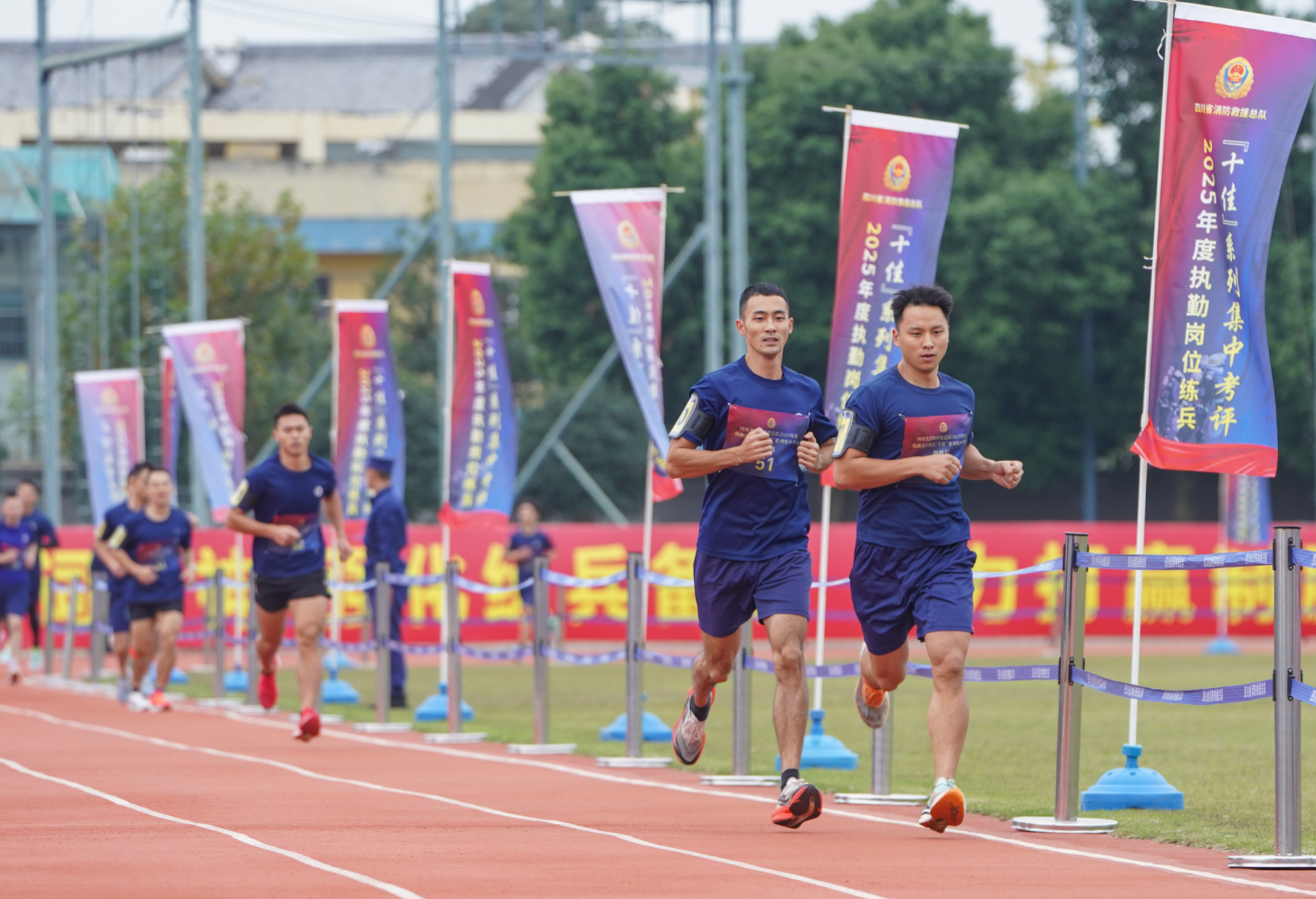 在基础体能方面,“十佳指挥员”需完成5000米跑、负重登10楼、单杠引体向上、搬运重物折返等科目;“十佳训练标兵”则涵盖5000米跑、负重登10楼、200米负重、400米综合体能操、60米肩梯登楼、百米消防障碍等科目,所有体能科目均按有效时间排名计分,直观凸显硬实力。