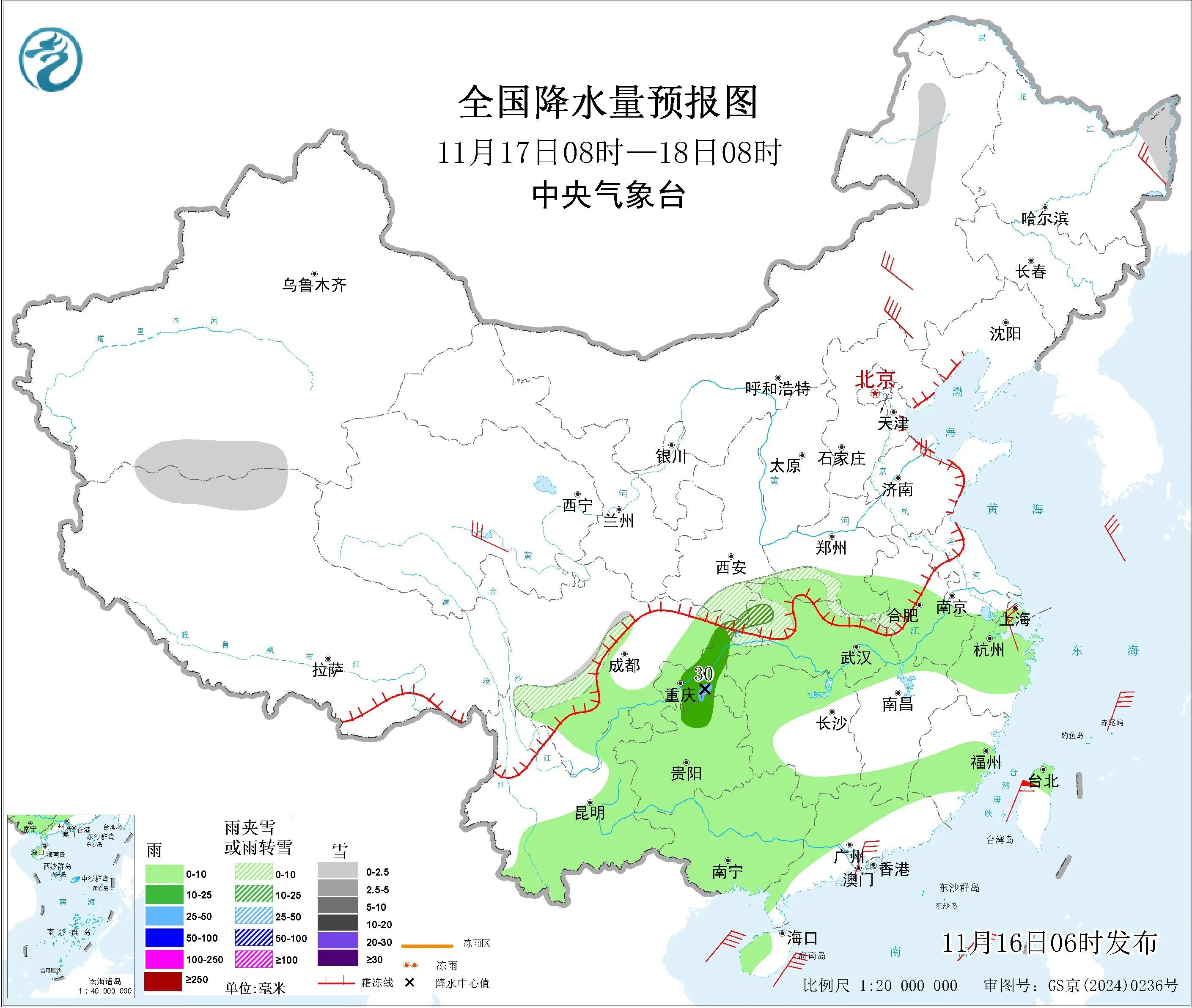据介绍,11月17-18日,受冷空气主体影响,增风,盆地大部伴随较明显降水过程,污染物浓度整体偏低,但降水间歇时段有沙尘传输影响风险。19-21日,天空逐渐拉开,转晴,垂直扩散条件较好,空气质量有望维持优良。22-24日,湿度有所增大,转静稳,颗粒物逐渐累积,局部城市有轻度污染风险。25-26日,云量增加,垂直扩散条件不利,局部城市仍有颗粒物轻度污染风险。27-28日,有弱北风渗透影响,空气质量有望逐渐改善。29-30日,转晴,垂直扩散条件转好,空气质量有望以优良为主。