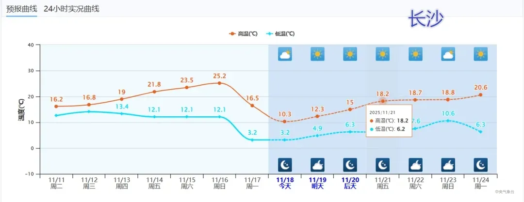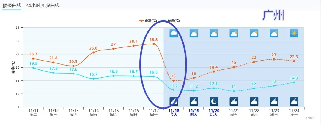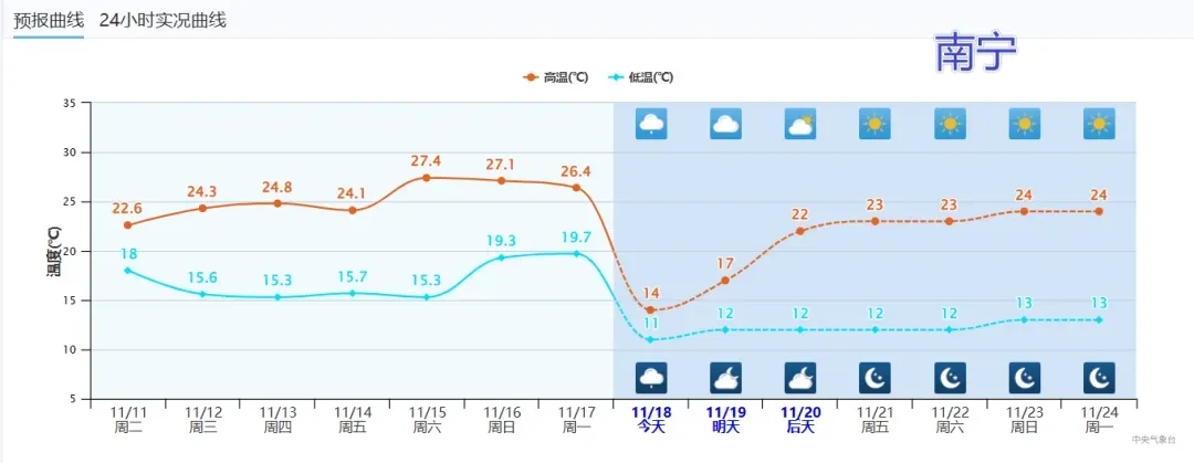 南方多地气温经历“大跳水”。来源:中央气象台网站