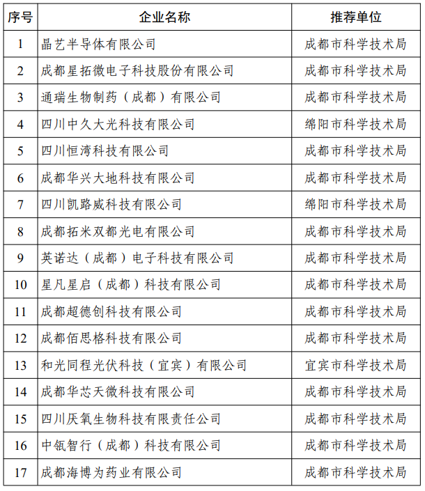 首批四川省种子独角兽企业拟备案名单