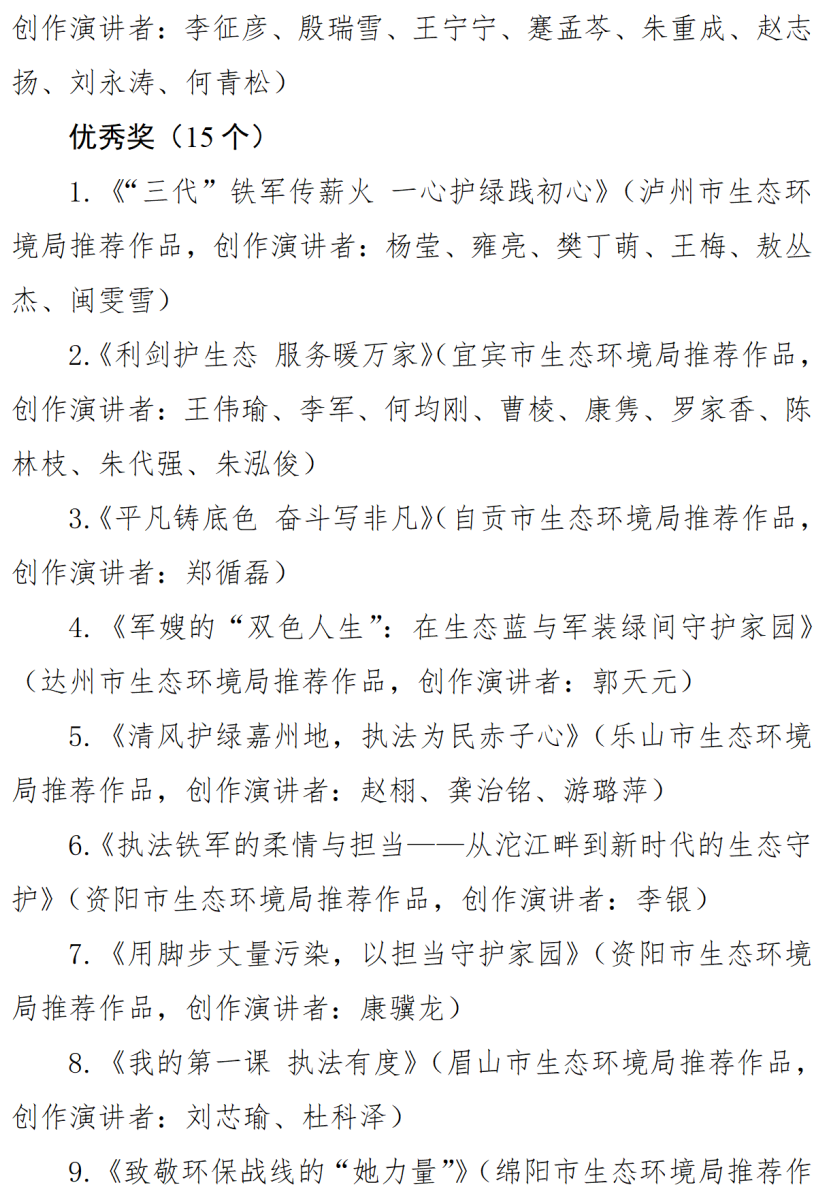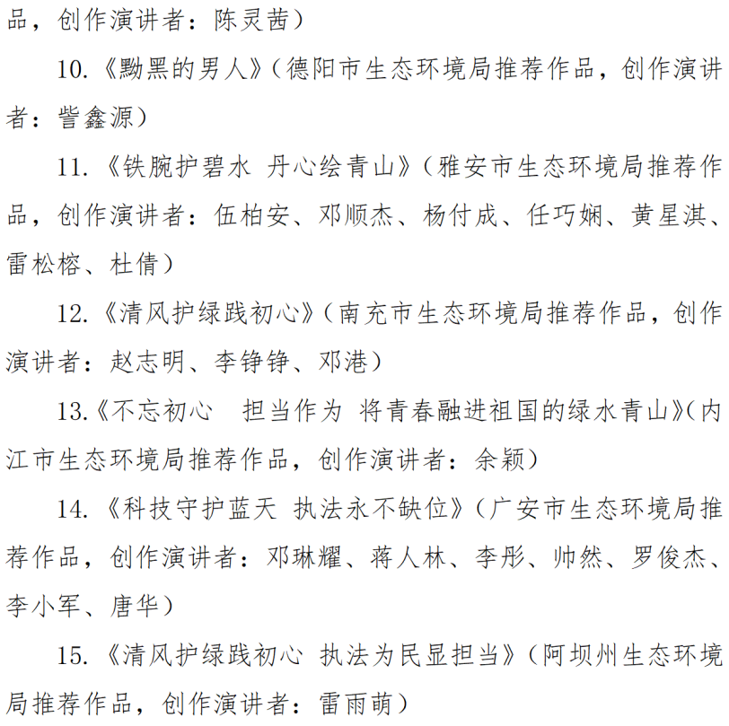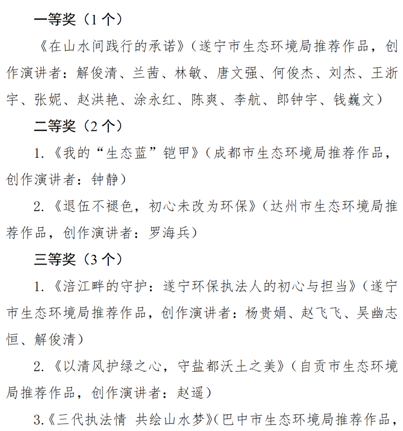 四川省生态环境执法系统“清风护绿践初心 执法为民显担当”主题演讲视频征集活动获奖名单