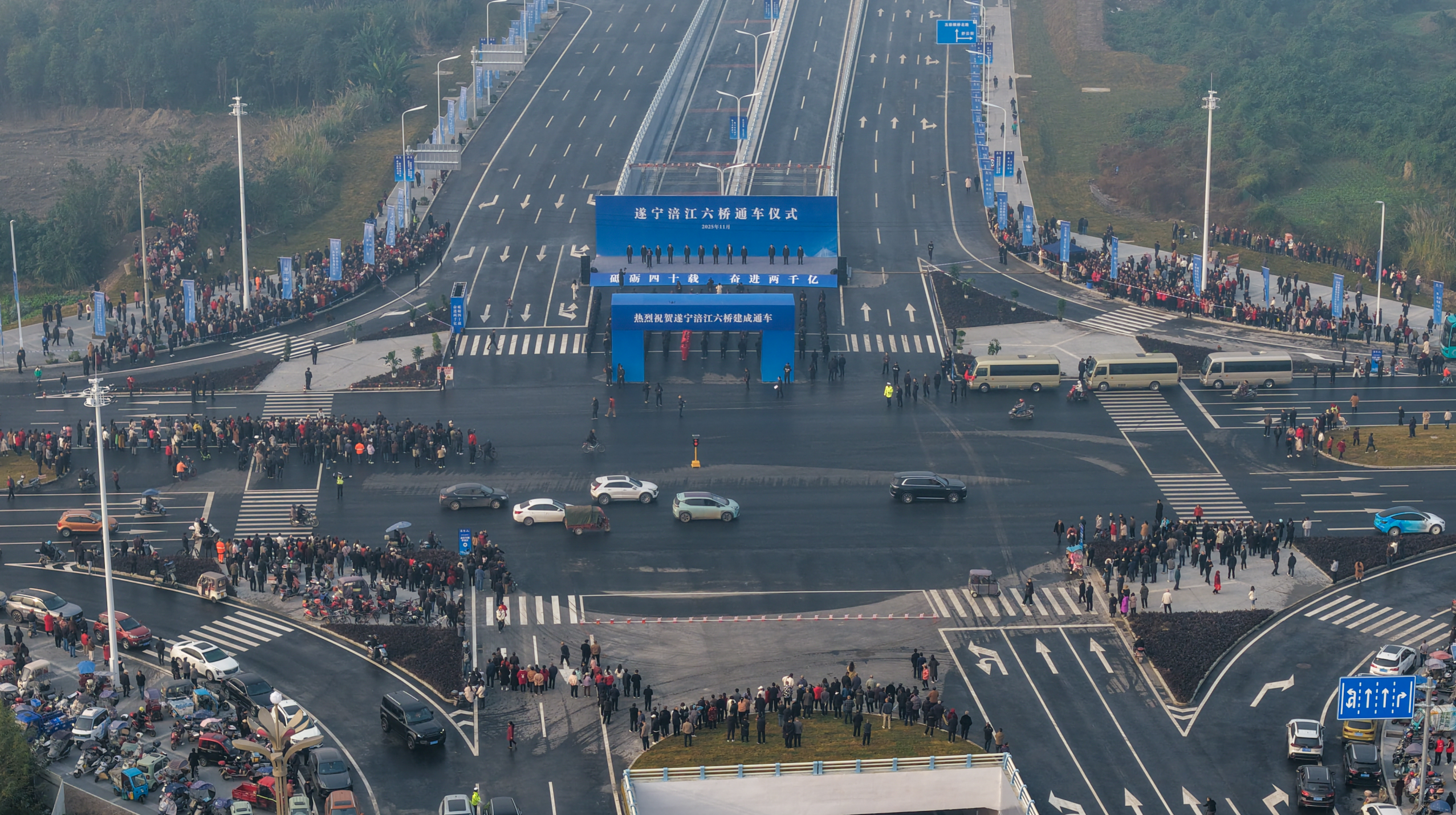涪江六桥是遂宁市“六纵九横”城市骨架路网“一横线”的重要组成部分,是连接涪江两岸城市区域中心的重要通道。大桥通车将连通遂宁经开区高铁新城片区、老城区及市河东新区,有效缓解涪江通德大桥、通善大桥及观音湖隧道日益增长的跨江交通压力,带动城市向北向东发展,对推动遂宁的新时代高质量发展,助力成渝地区双城经济圈建设、长江经济带发展等重大战略实施具有十分重要的意义,是重要的民生工程、致富工程。