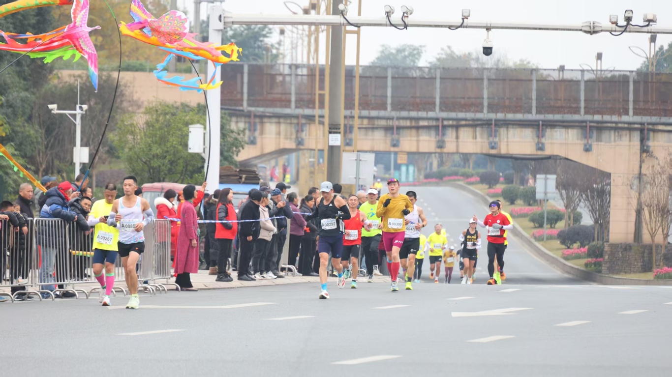 当天上午8时,发令枪响,选手们从乐山世豪广场出发,于青山绿水间穿行,远眺乐山大佛庄严,感受峨眉山云飘逸,途中还可欣赏沿江古城风貌与生态湿地景观。沿途市民热情助威,“雄起!”“加油!”呐喊不断。赛事深度融合本地非遗与民俗,沿途呈现川剧变脸、威风锣鼓、彝族歌舞、峨眉武术等精彩展演,并穿插融合乐山文化元素的汉服秀,使奔跑不仅是一场竞技,更成为沉浸式的文化体验之旅。