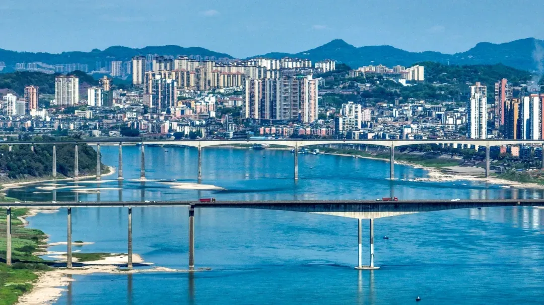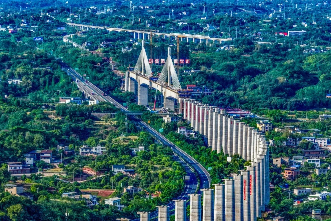 2024年4月19日,西部陆海新通道隆泸叙铁路、G76厦蓉高速公路与远处的绵泸高铁内自泸线“同框”。