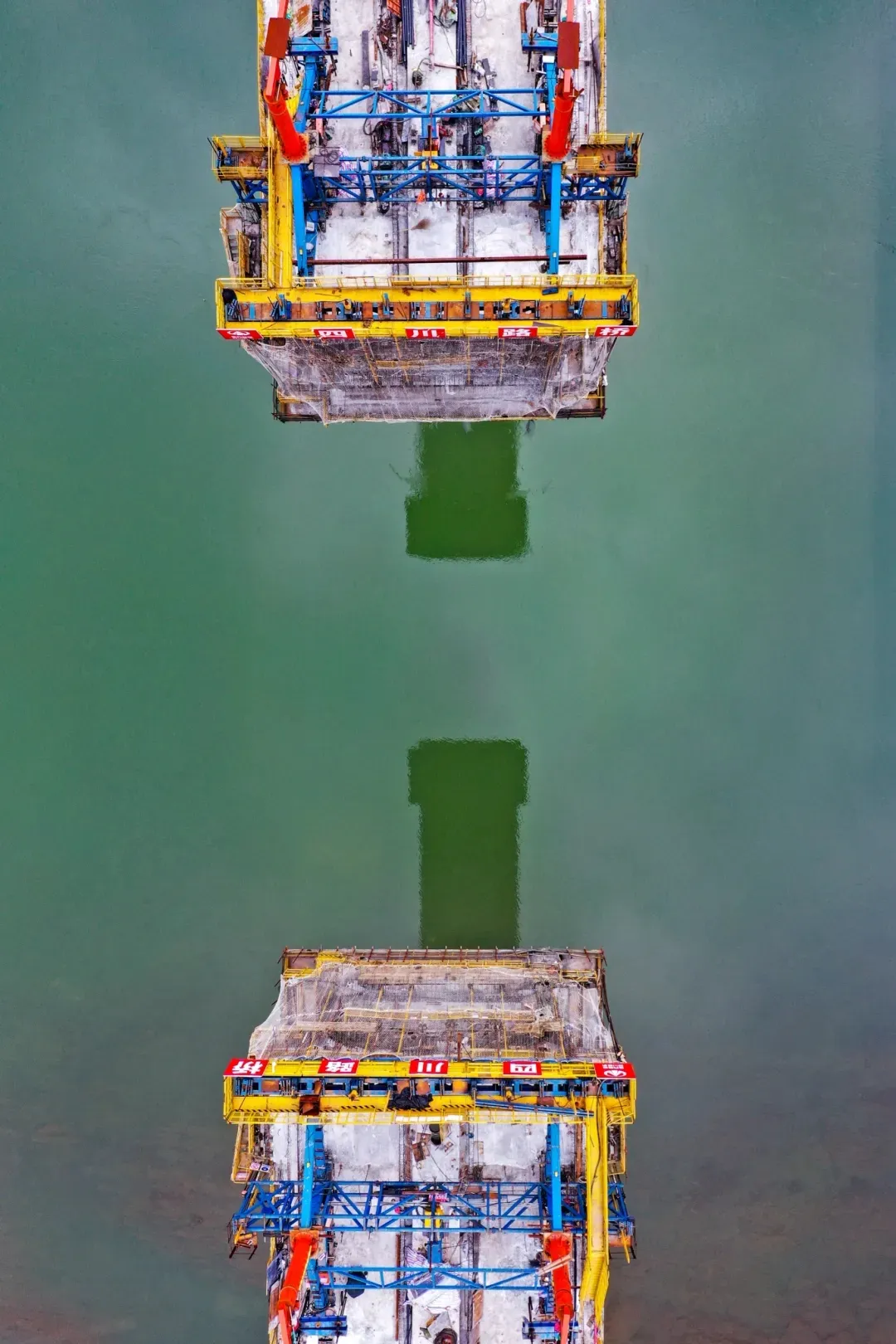 2022年1月11日,西部陆海新通道隆泸叙铁路泸州金山沱江铁路大桥桥墩有序建设。