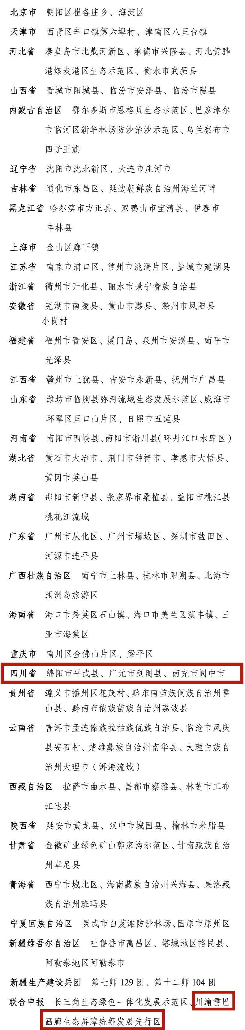 四川发布客户端消息 今日,生态环境部公布新一批生态文明建设示范区和“绿水青山就是金山银山”实践创新基地名单。