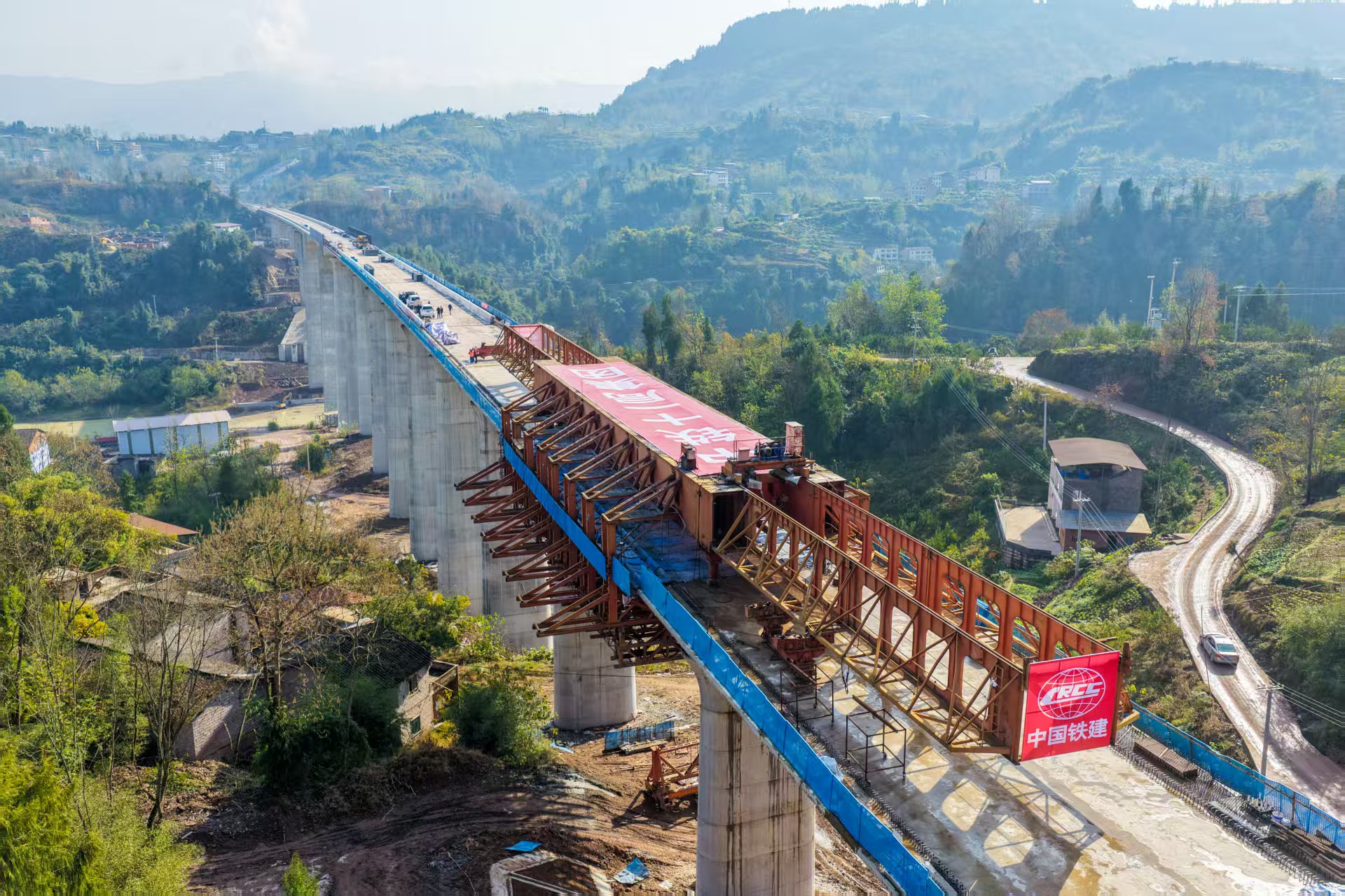 四川发布客户端消息 记者从成达万高铁公司获悉,12月25日,随着近9小时的浇筑,成都至达州至万州高速铁路(以下简称:成达万高铁)普里河特大桥全桥顺利合龙,为成达万高铁早日建成通车奠定了坚实基础。