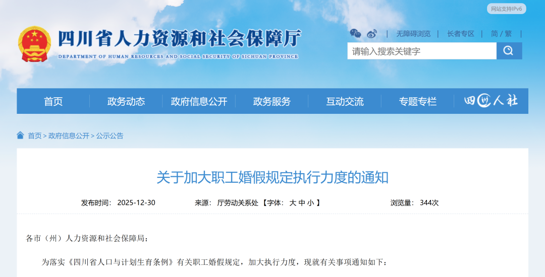四川发布客户端消息 为落实《四川省人口与计划生育条例》中关于职工婚假的规定,加大执行力度,日前,四川省人力资源和社会保障厅下发《关于加大职工婚假规定执行力度的通知》,要求各地切实保障职工合法休假权益。