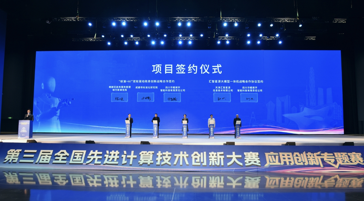 签约环节,“标准+AI”双轮驱动政务创新战略合作、汇智星源大模型一体机战略合作两项协议也正式签约,为先进计算、人工智能技术落地应用与产业生态构建注入新活力。