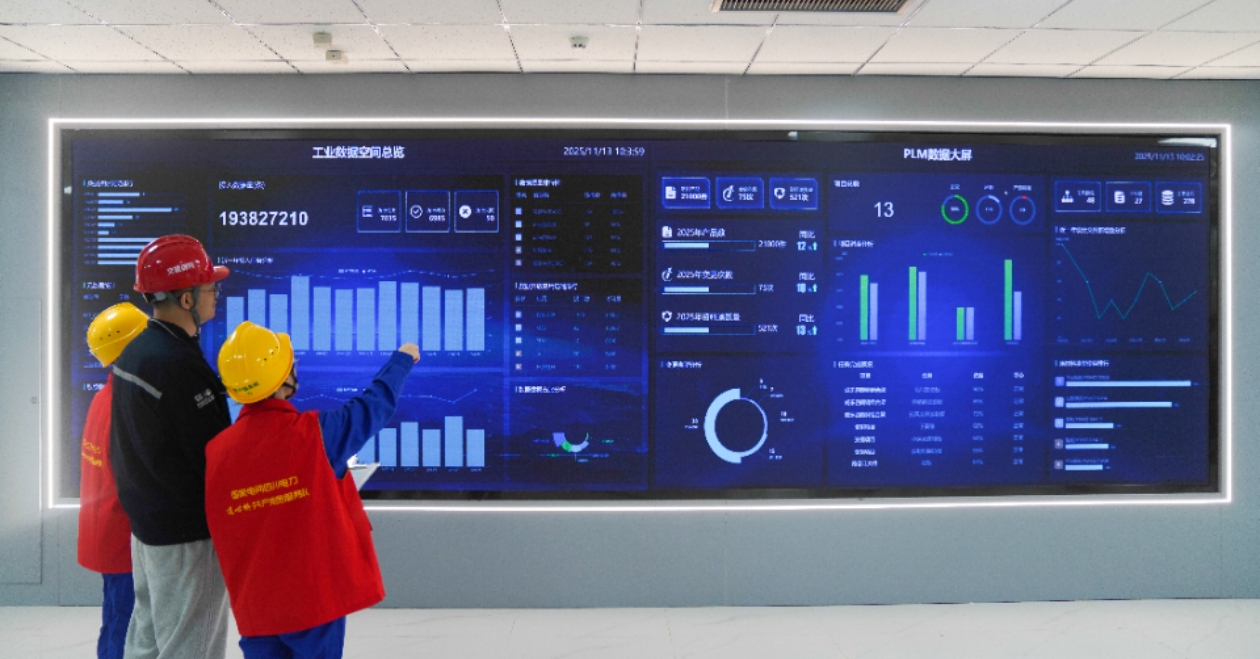 在四川钢构智造的智慧管理中心,大屏实时显示各产线能耗数据,与16公里外新投运的眉山西500千伏变电站协同运行──一张更坚强、更智能的电网,正为车间注入动能。