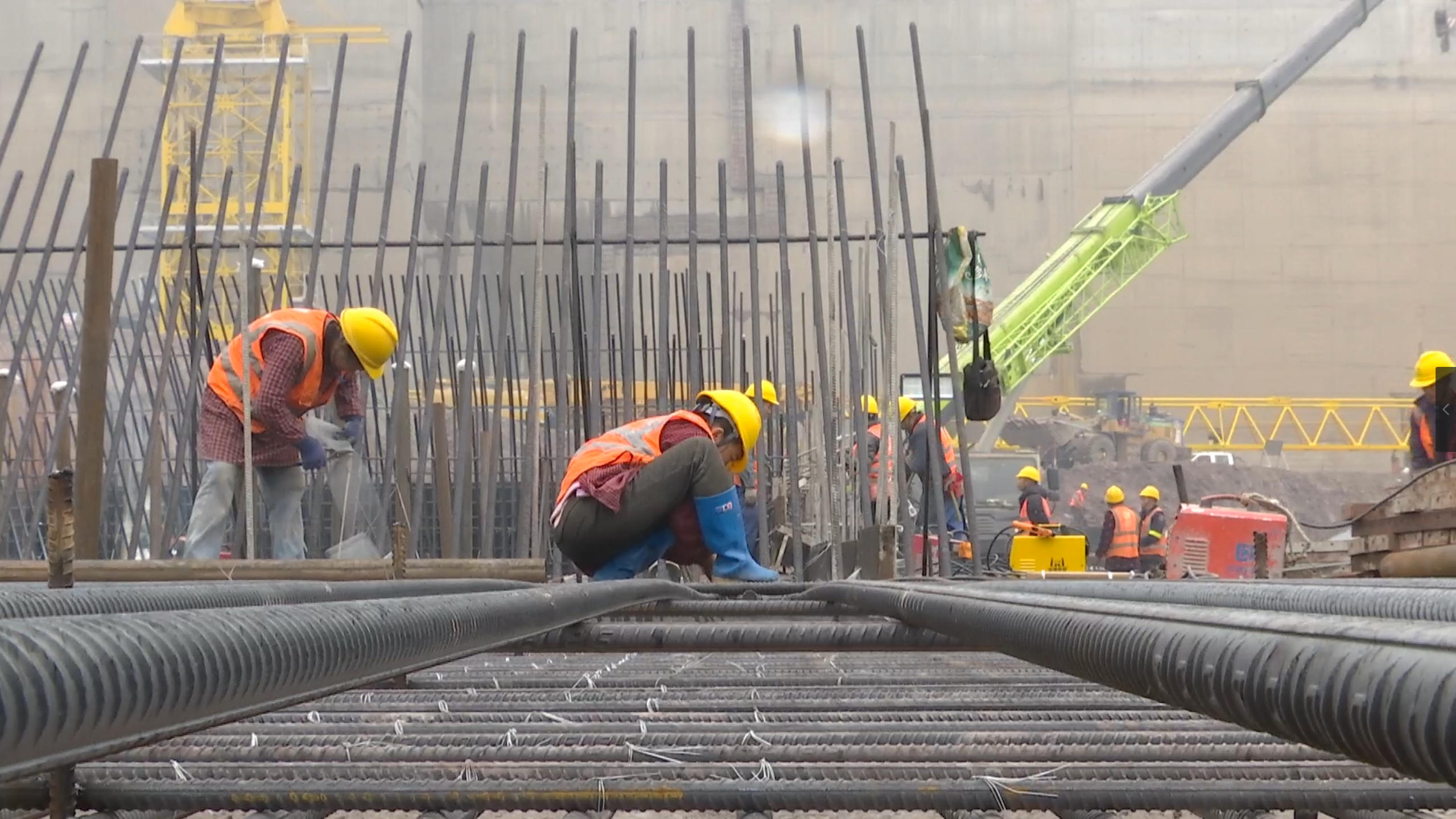 岁暮天寒,岷江之畔却是一派火热的施工图景。运输车往来穿梭,塔吊巨臂在空中平稳转动,挖掘机的轰鸣声与焊接的火花交织,奏响项目攻坚的交响。元旦期间,岷江老木孔航电枢纽工程的2000余名建设者选择坚守岗位,在繁忙的作业面上迎接新年。