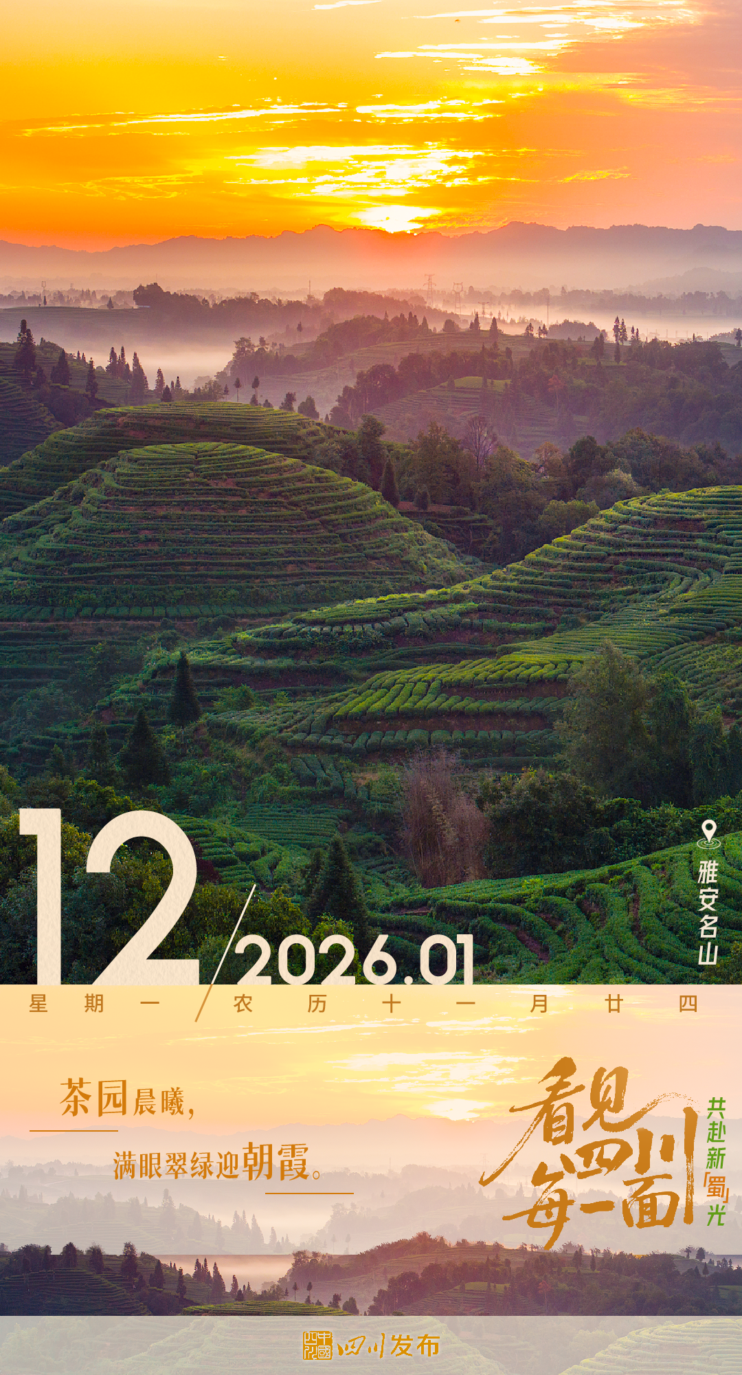 早安四川丨茶园日出