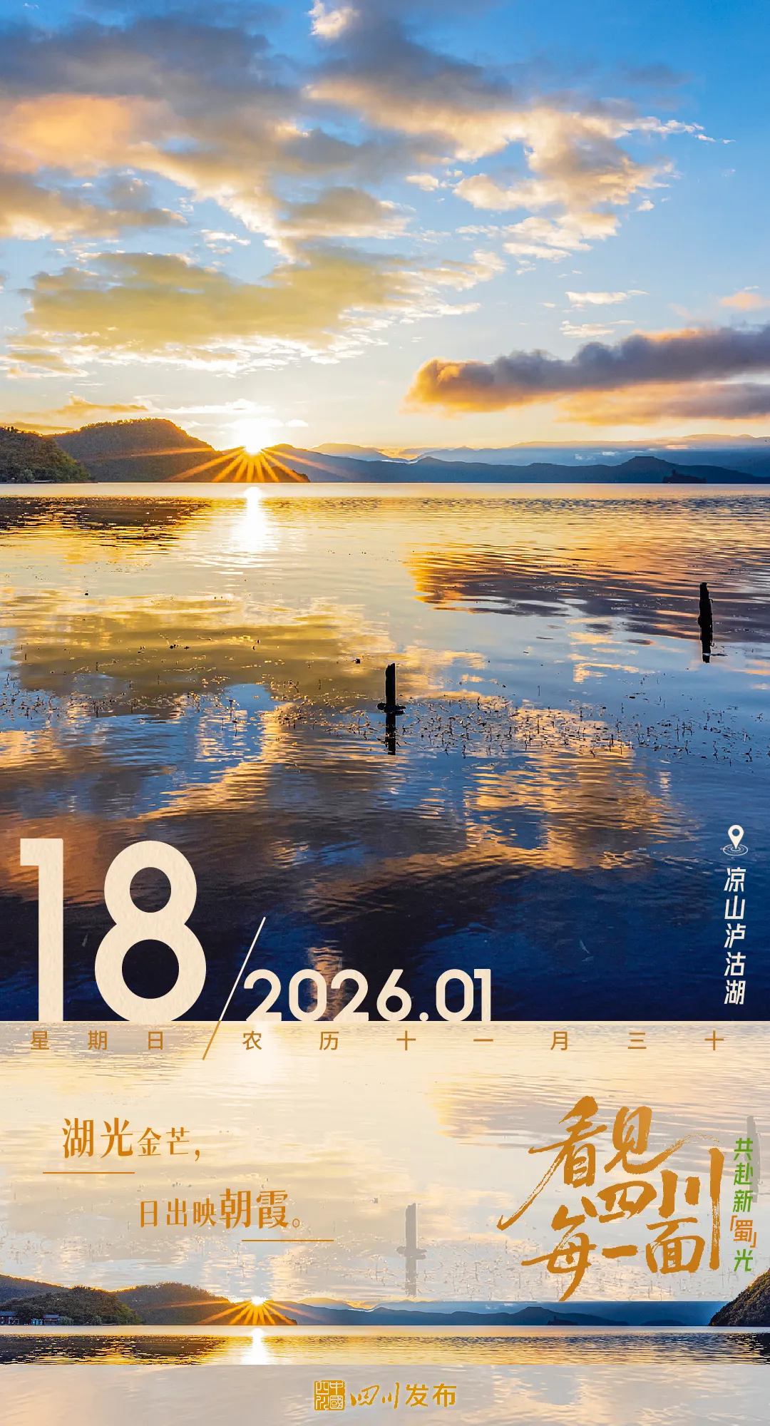 早安四川丨湖光金芒