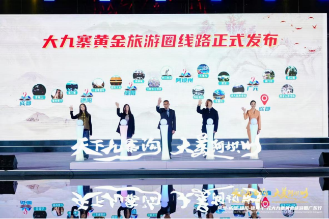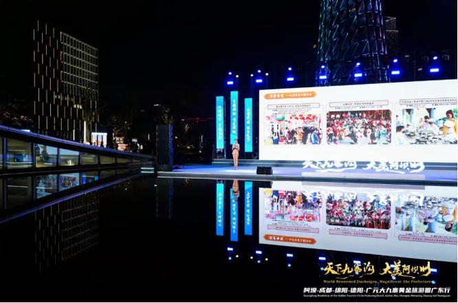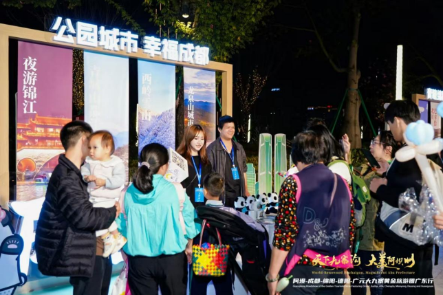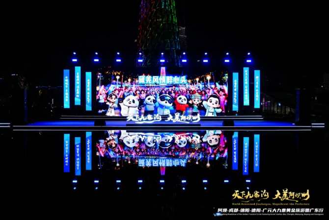 四川发布客户端消息 为深化川粤文旅战略协作,精准拓展华南文旅市场,合力推广川西北冬季文旅优质资源,2026年1月17日晚,成都与阿坝州、广元市、德阳市、绵阳市协同举办的大九寨黄金旅游圈广东行活动,在广州市广州塔南广场举行。活动以“冰雪秘境・人文川蜀”为核心脉络,成都立足“公园城市 幸福成都”品牌定位,联动川内市州,通过政策解读、产品全景展示、合作项目签约等多元化形式,多维度展现成都冬季与新春文旅独特魅力与核心优势,持续提升成都文旅在大湾区市场的品牌影响力与市场吸引力。