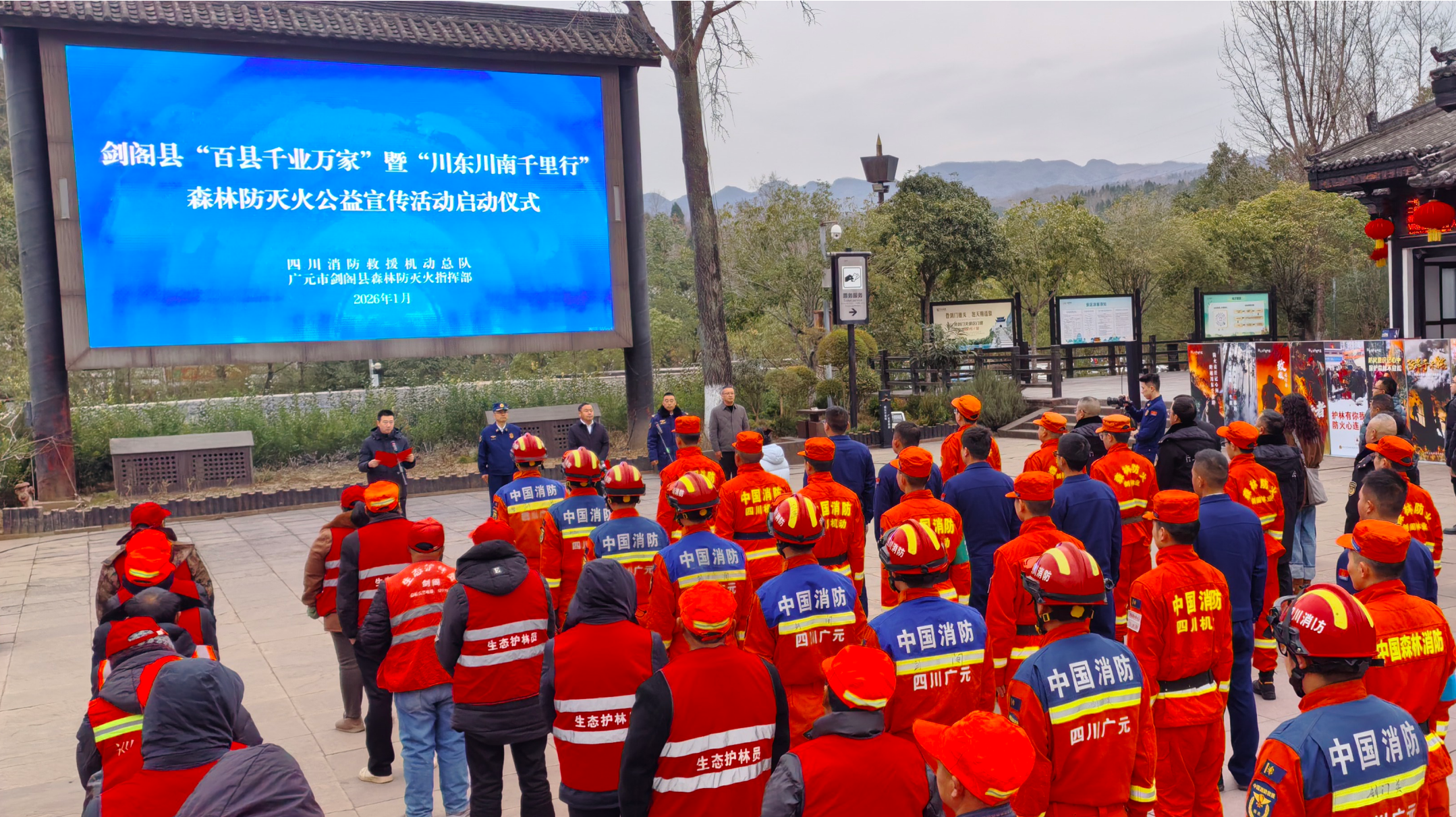 四川发布客户端消息 “四九”的剑门关,山风凛冽。在古蜀道翠云廊的浓荫下,身着“救援橙”的四川消防救援机动总队“川东川南千里行”森林草原防火公益宣传送学送教小分队,正与剑阁县专业扑火队和护林员并肩巡护。