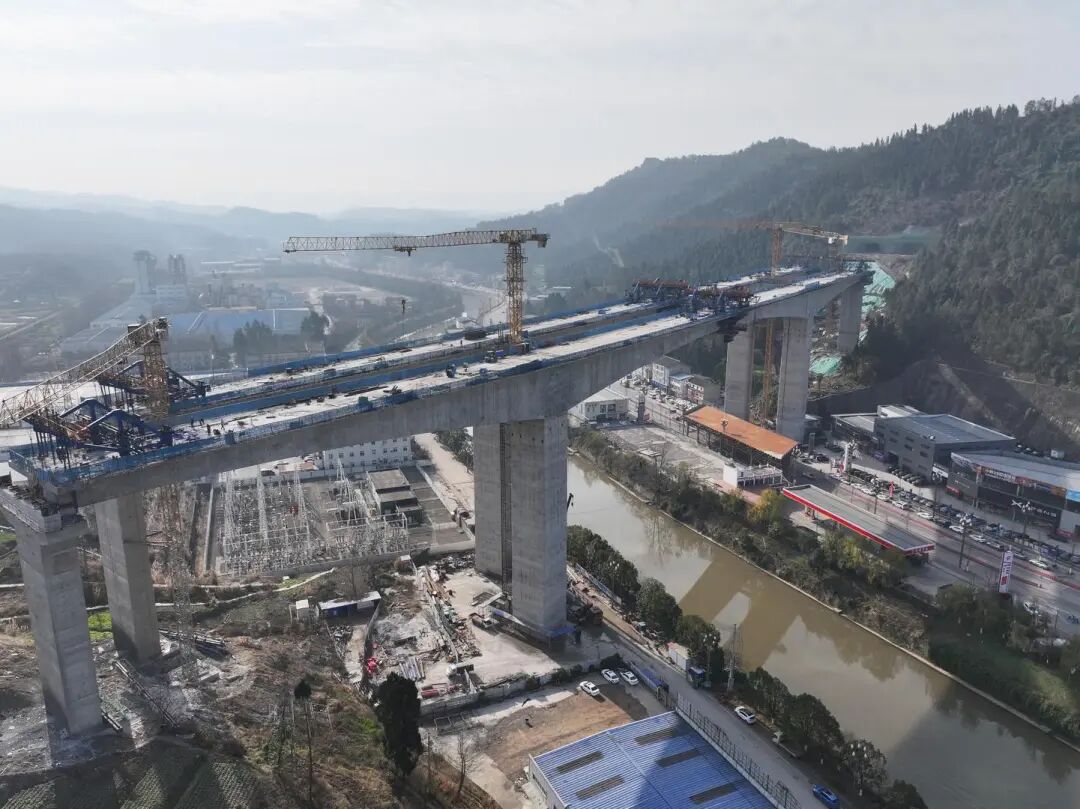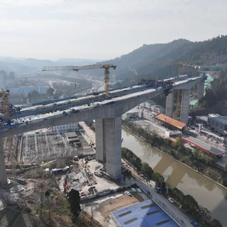 据悉,新桥坝特大桥全长1582.3米,整体采用“主桥+引桥”的组合设计,其中主桥长350米,为三跨连续刚构结构,整体造型流畅稳固。
