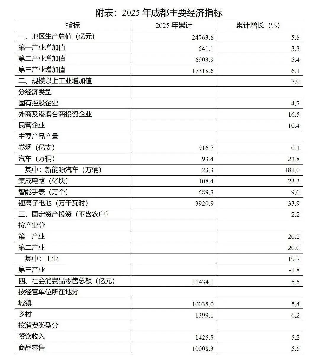 2025年成都经济运行情况公布