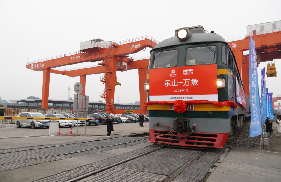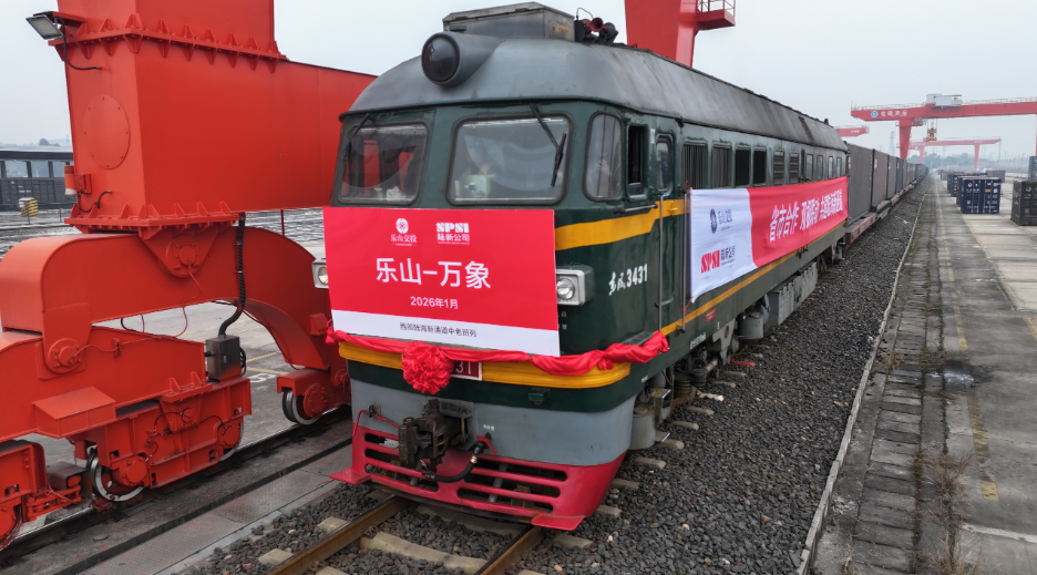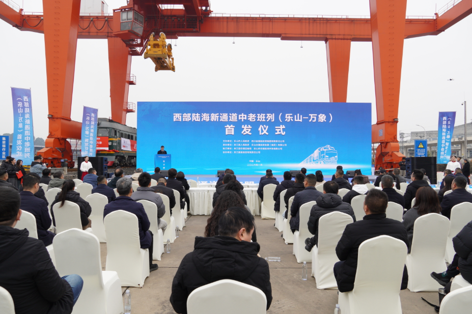 1月23日,西部陆海新通道中老班列(乐山—万象)首发仪式举行,一辆满载“乐山造”产品的中老班列从成昆铁路夹江站鸣笛启程,将经云南昆明王家营西中转、磨憨口岸出境,最终抵达老挝万象、琅勃拉邦,标志着以乐山夹江为起点的南向国际物流大通道正式贯通,乐山“公铁水空”立体开放的交通新格局全面开启。