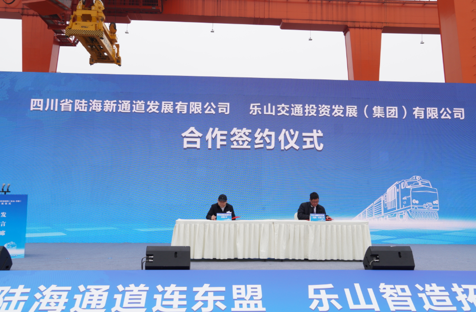 首发仪式现场,四川省陆海新通道发展有限公司与乐山交通投资发展(集团)有限公司签订合作协议,双方将围绕通道共建共享、班列常态化运营、枢纽节点能力提升等领域深化合作。