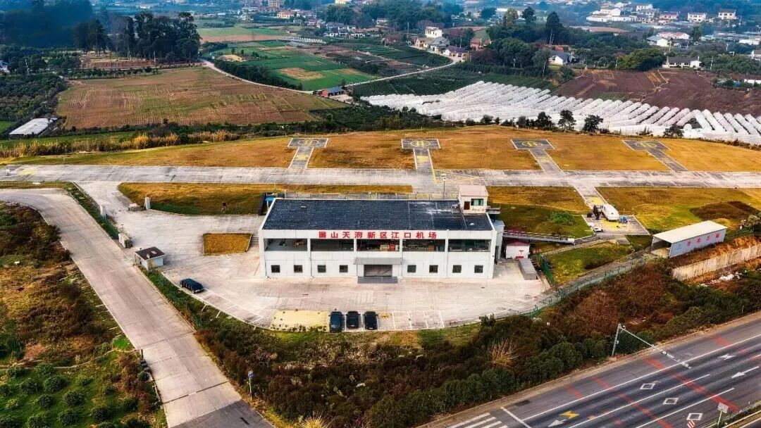 彭山江口通用机场位于彭山区江口镇茶场村,北接成都、东临天府国际机场,距眉山市区仅17公里,区位优势显著。该机场占地约50亩,建有220米×20米跑道一条、直升机悬停坪5个及标准停机位12个,硬件设施完备。作为民航局批准的A2类通用机场,机场已取得使用许可证,具备航空培训、农林作业、应急救援、空中游览等综合服务功能。