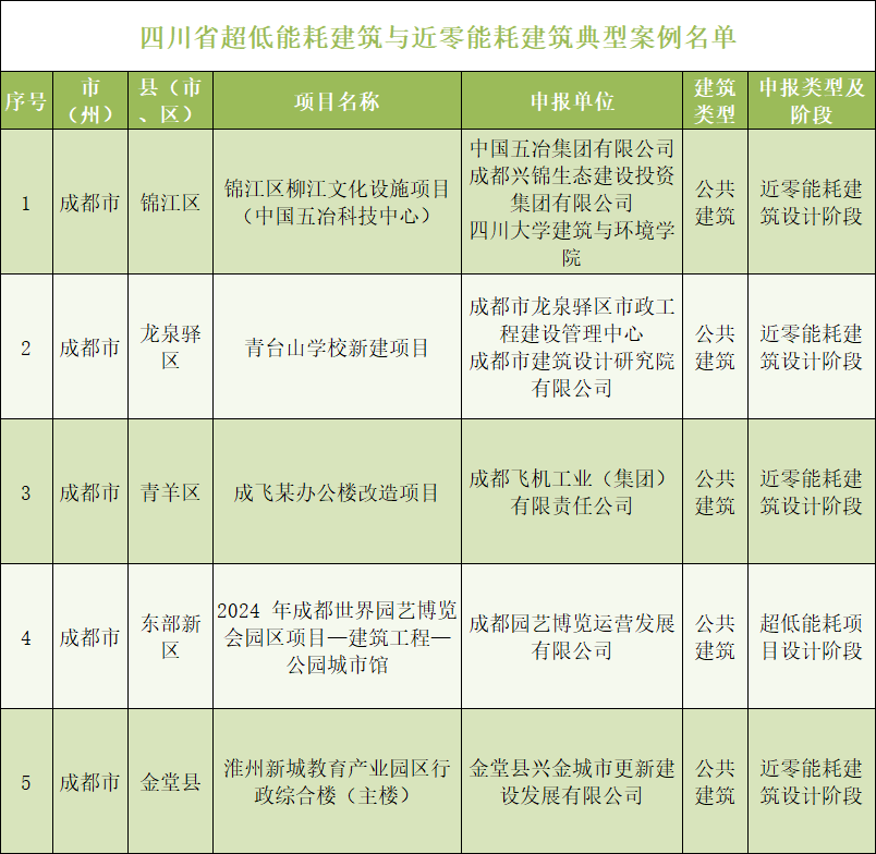 四川公示5个“绿色建筑”典型案例!
