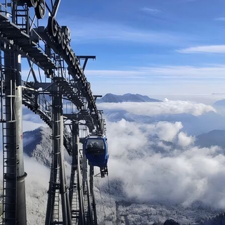 这里的云海也不甘落后,只见山顶天气晴朗、碧空如洗,洁白如玉的云海不断翻滚,仿佛一幅流动的水墨画,置身其中,怎一个美字了得!
