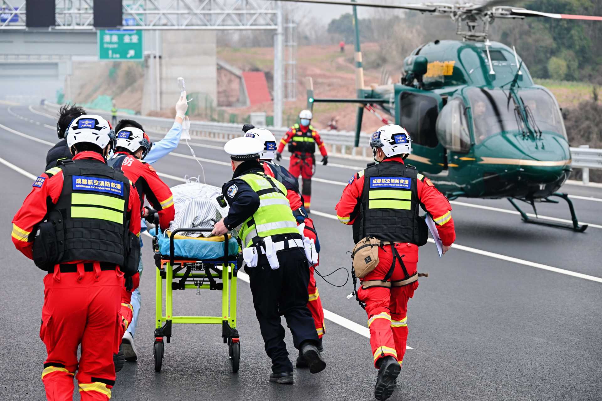 由高速公安牵头、经华西医院专业培训的“CERT”(联合应急响应)小队在现场对伤员进行快速检伤分类。并针对人员严重伤情,在川内多车道高速公路中首次启用直升机参与应急救援、转运伤员。直升机配备呼吸机、除颤仪等设备,相当于“空中移动ICU”,通过公安部道路交通安全研究中心开发的“交通事故伤员救治信息服务平台”与医院实时共享伤情信息,畅通了“空中转运—地面衔接—院内急救”的生命通道,实现“上机即入院、到场即抢救、医生等患者”。