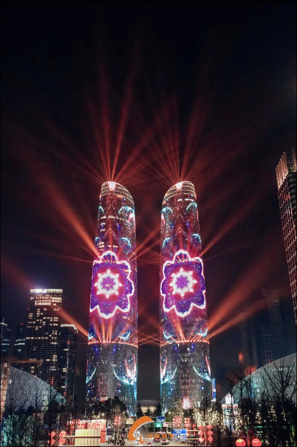成都高新区天府双塔为市民游客