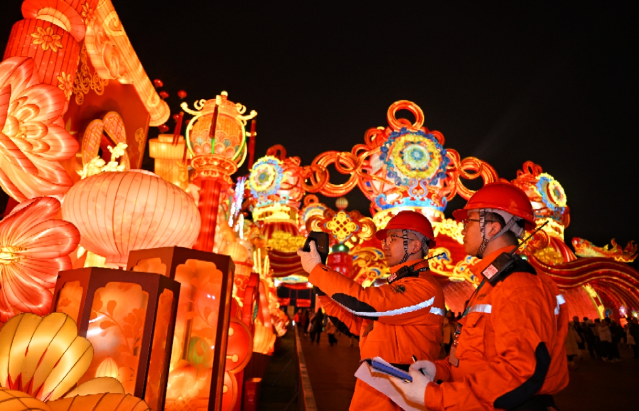 “春节期间,自贡灯会迎来客流量高峰。我们共有35人在这里值守,利用‘电网一张图’监测园区用电设备,第一时间消除安全隐患,确保攀西的风光稳稳地点亮每一盏灯,让游客能尽情享受新春的喜庆氛围。”国网自贡供电公司保电人员陶华欣说。