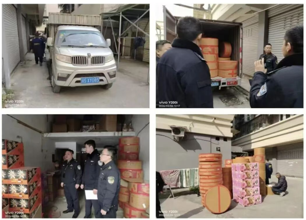 2026年2月6日,根据群众举报线索,达州市大竹县应急管理局联合县公安局在大竹县白塔街道鸿源星小区分别查获1起非法运输、储存烟花爆竹行为。现场查获停放在该小区内一辆车牌号为川S·XY085的小型厢式货车装载有烟花10件、爆竹79件;一闲置民房储存有烟花64件、爆竹32件。经查,该运输车辆未取得烟花爆竹道路运输许可证,储存场所未经相关部门审核批准,分别构成非法运输、非法储存烟花爆竹行为。目前,涉案烟花爆竹已被依法查封扣押并转移至专用储存仓库,相关调查工作正在进行当中。