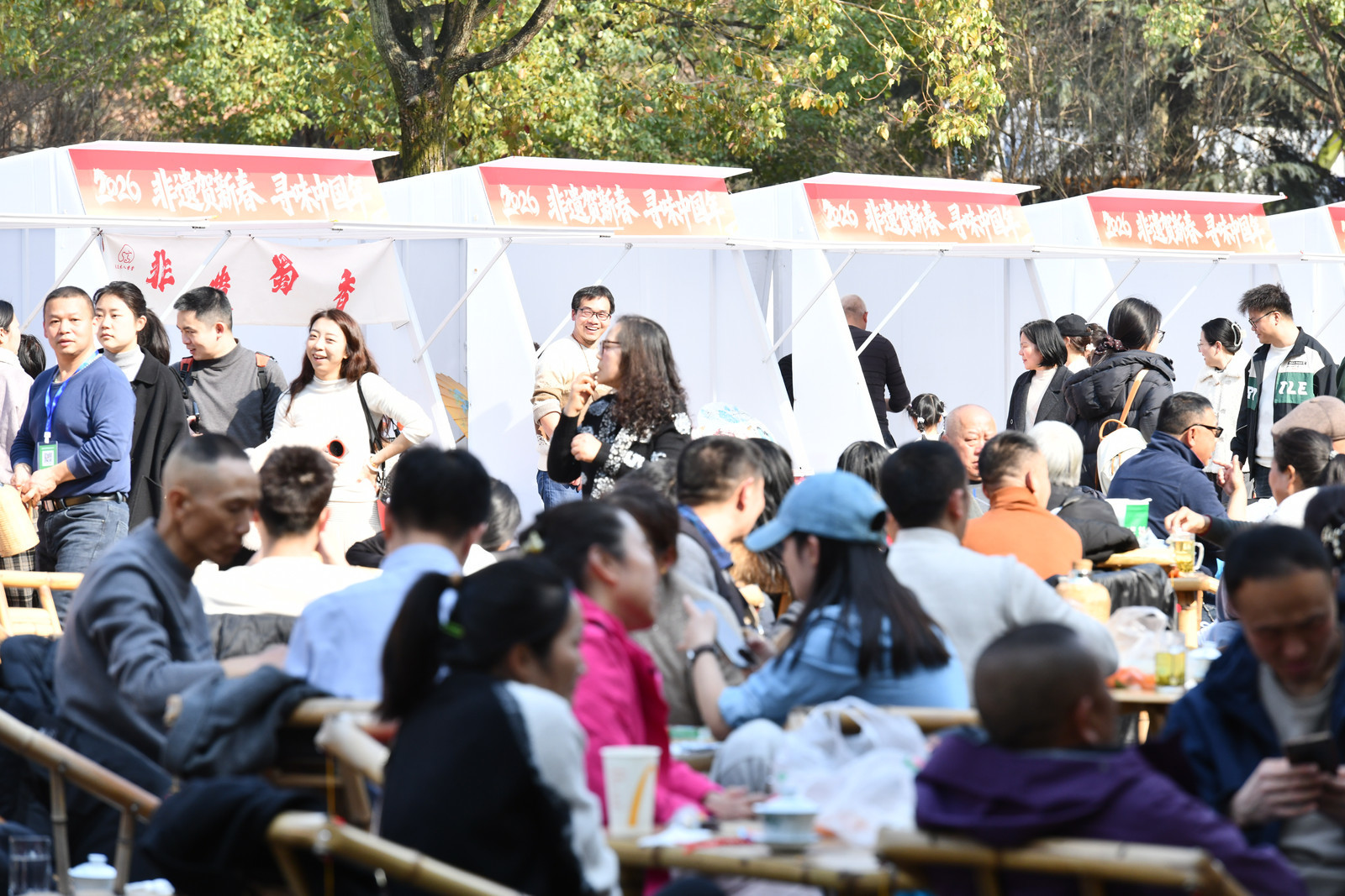 正月初五,“茶和天下”非遗下午茶。300平方米的露天空间里,30套竹椅竹桌错落有致,还原最地道的成都街头茶馆风貌。市民游客在暖阳下悠闲摆龙门阵,亲身感受“盖碗茶香飘,慢品成都年”的慢生活哲学。