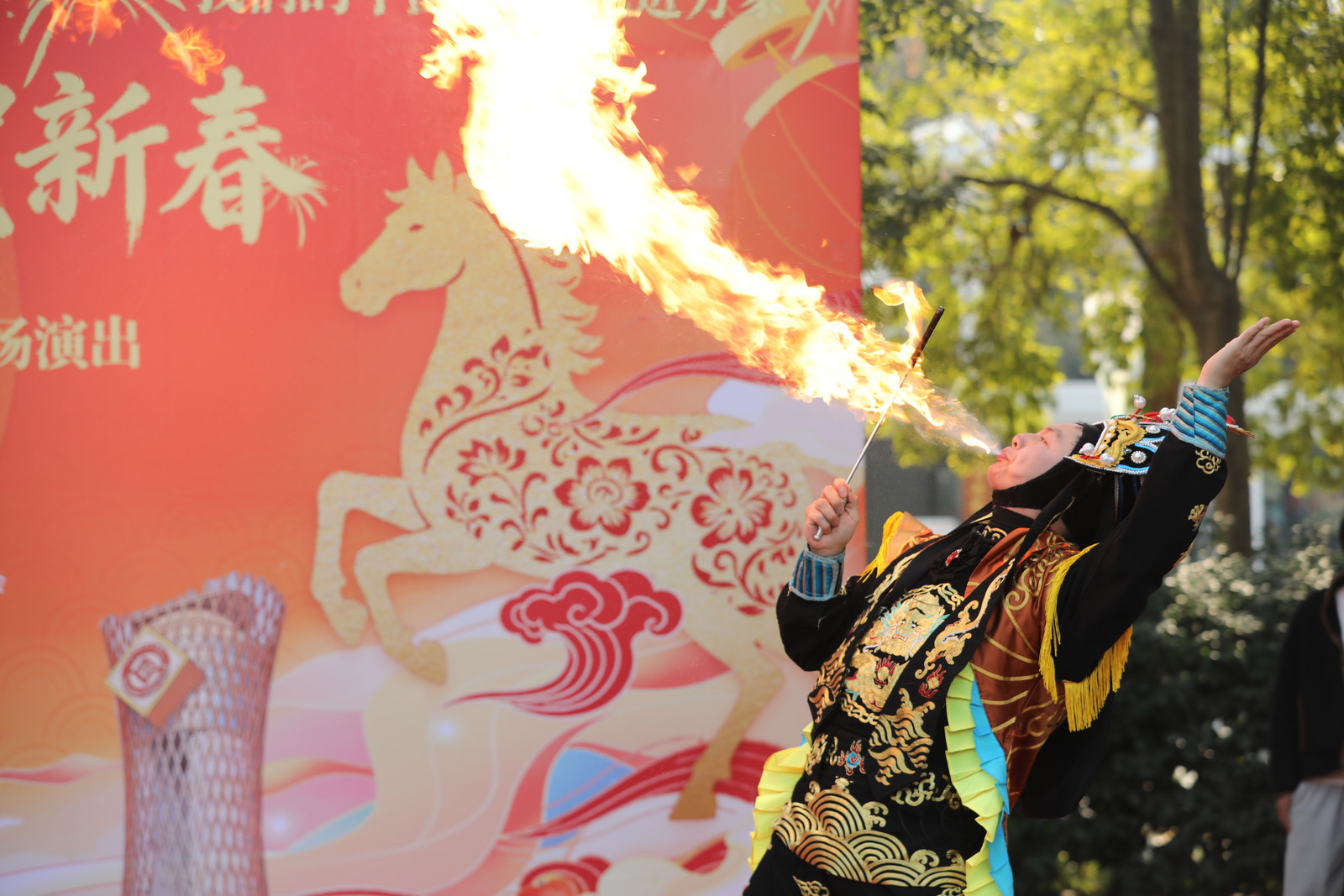 除了每日主题日活动,园区内三大爆款项目同样人气火爆。夜幕低垂,非遗千灯游园会30余组灯组璀璨亮灯,虫鸣森林、航历世界、十二长廊、梦回锦城四大主题区一步一景。篝火舞台围炉暖场,国潮舞台好戏连台,打铁花在夜空中炸裂如繁星,火花四溅间,年味被彻底点燃。许多人举着手机直播,朋友圈刷屏:“这才是过年该有的样子!”