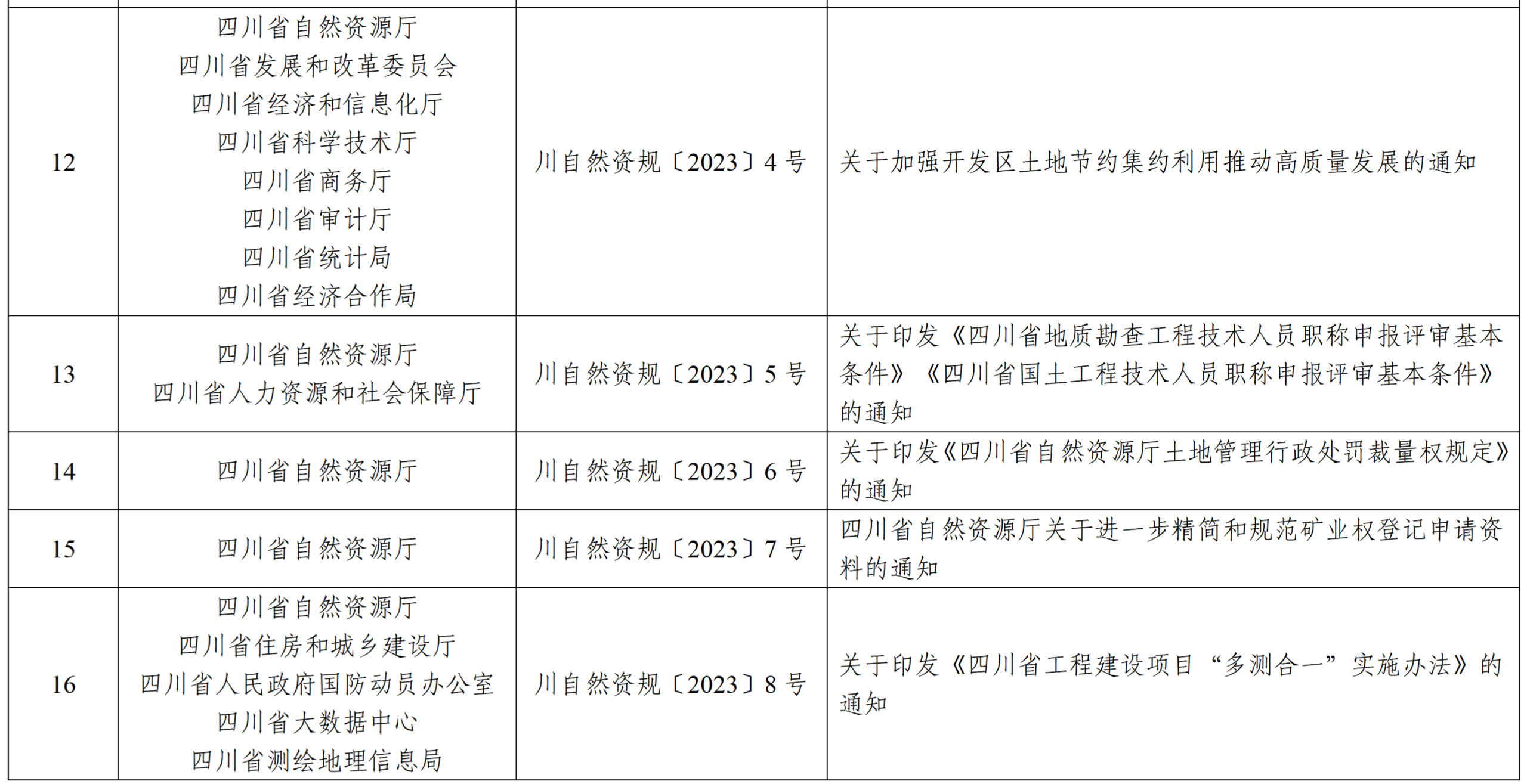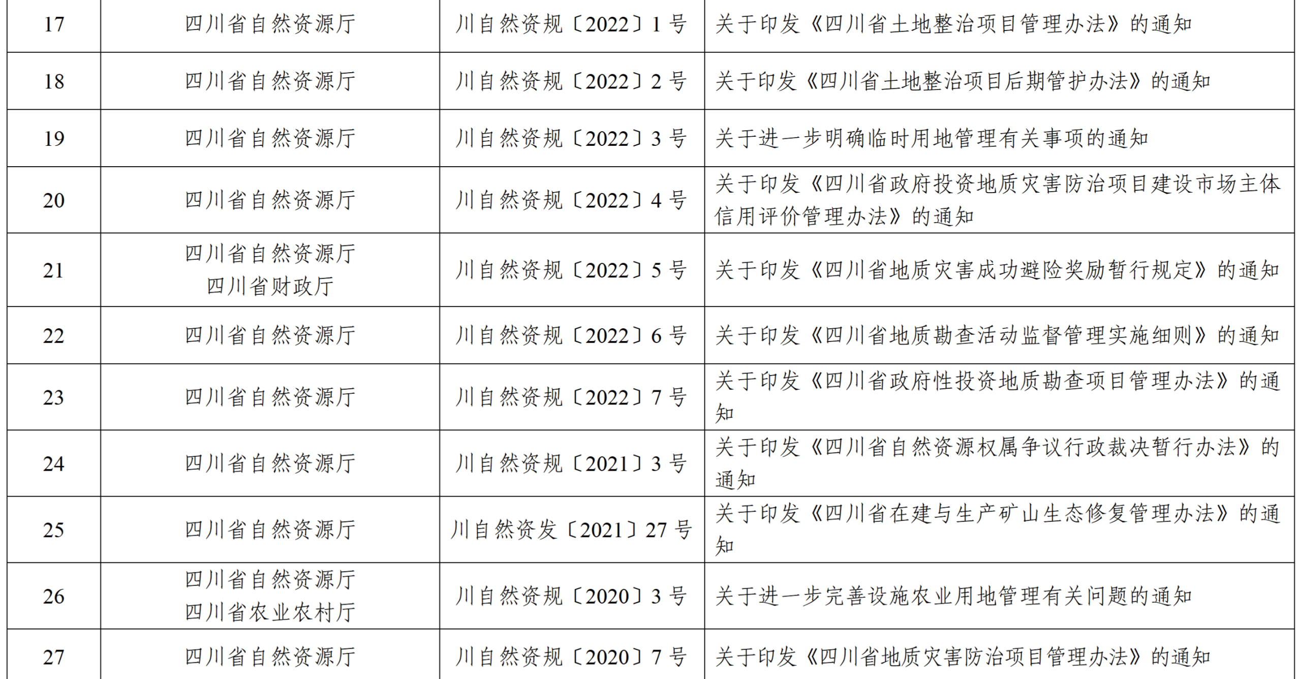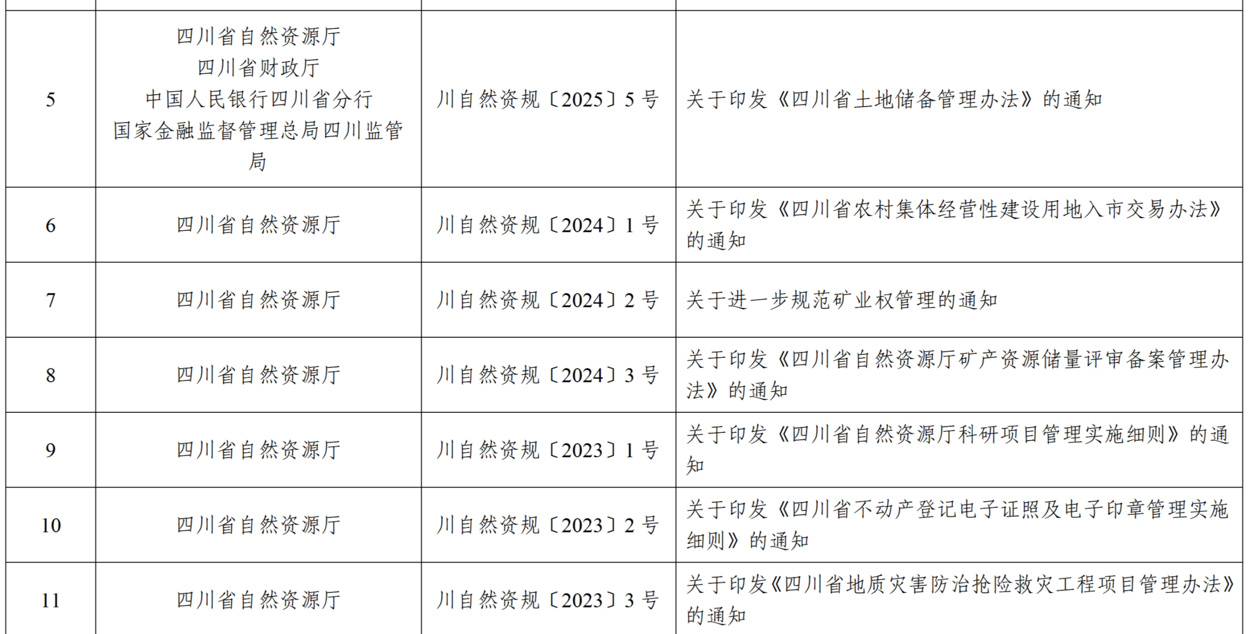 为确保自然资源厅行政规范性文件的时效性,按照《四川省行政规范性文件管理办法》《自然资源部关于加强自然资源法治建设的通知》《四川省自然资源厅行政规范性文件管理办法》等有关规定,省厅对截至2025年底制定的现行有效的行政规范性文件进行了全面清理。