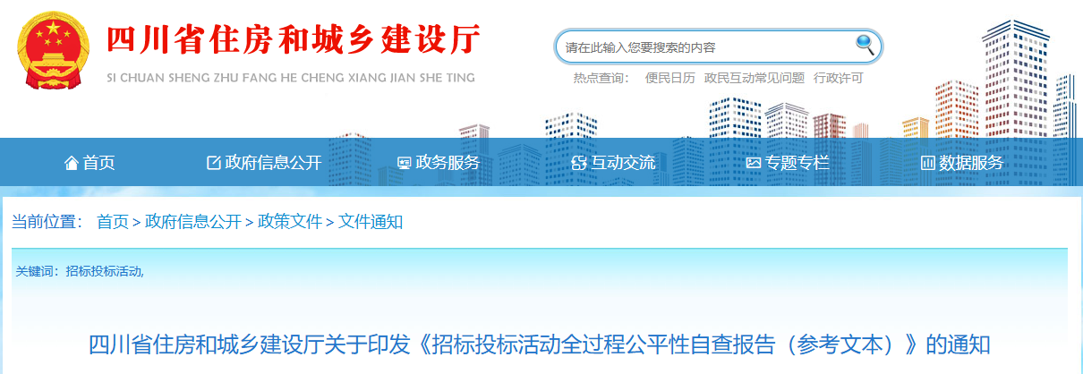 四川发布客户端消息 为更好指导招标人对招标投标活动的全过程公平性进行全面自查,近日,四川省住房和城乡建设厅发布通知,印发《招标投标活动全过程公平性自查报告(参考文本)》。