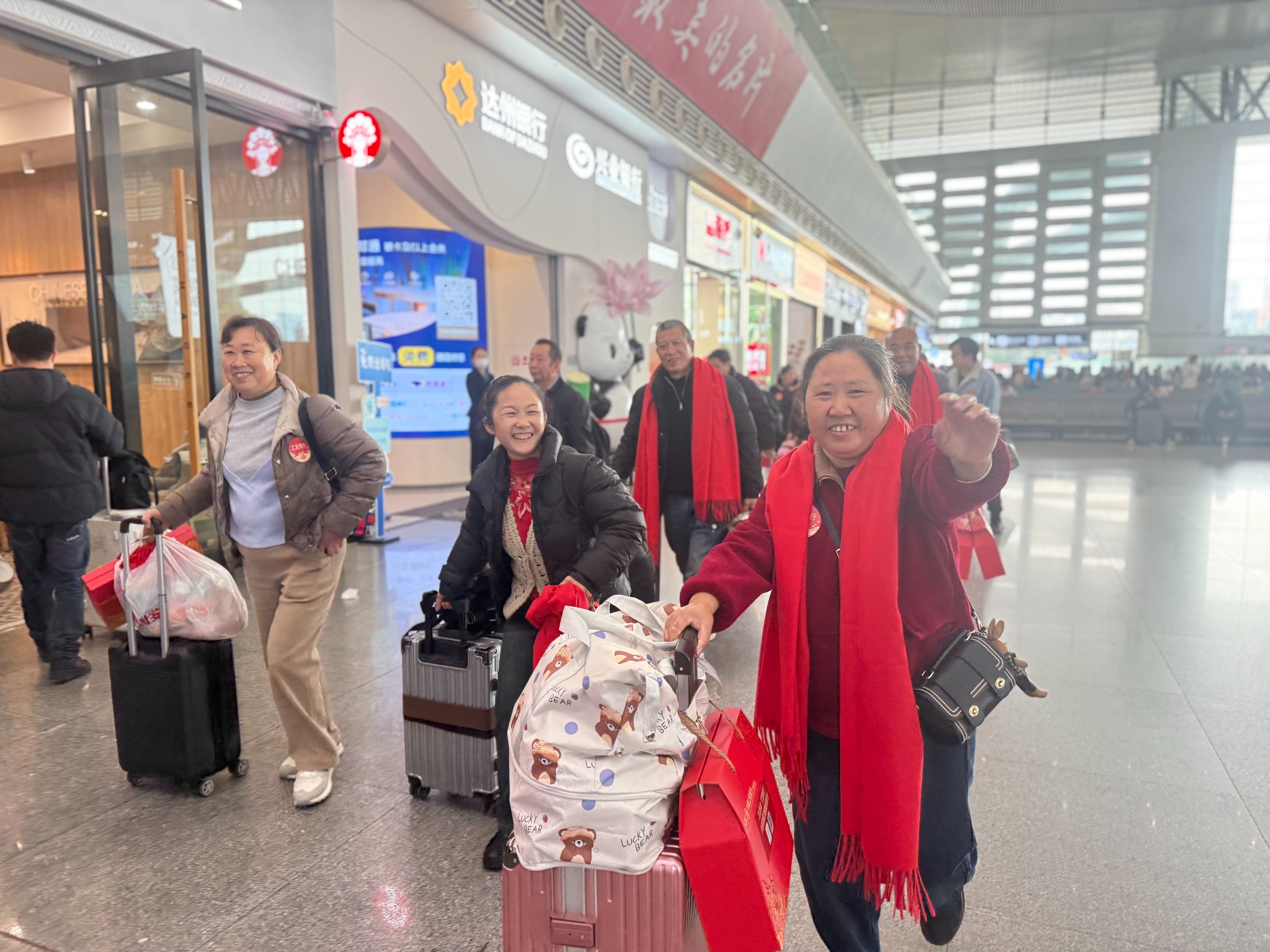 在成都东站送站仪式现场,气氛热烈而温馨。出席活动的领导向农民工代表赠送了精心准备的返岗伴手礼,传递党和政府的关心关爱。农民工朋友们手提礼包,笑容洋溢,对此次暖心服务赞不绝口。“感谢政府为我们安排免费专列,还送来大礼包,心里特别温暖!”来自成都市金堂县土桥镇金壶村、在广州华仁空调厂务工的李方琼激动地说道。