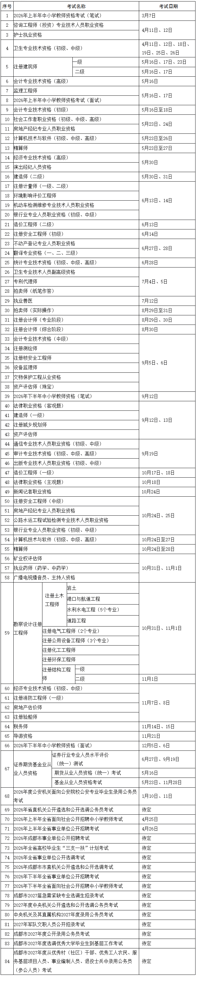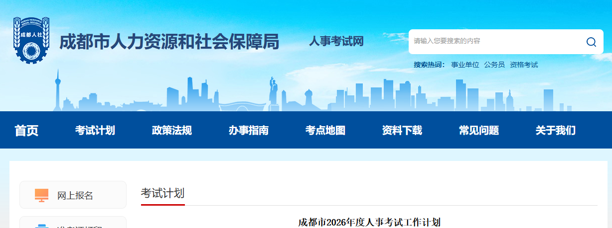 记者今日从成都人事考试网获悉,成都市2026年度人事考试工作计划正式公布。