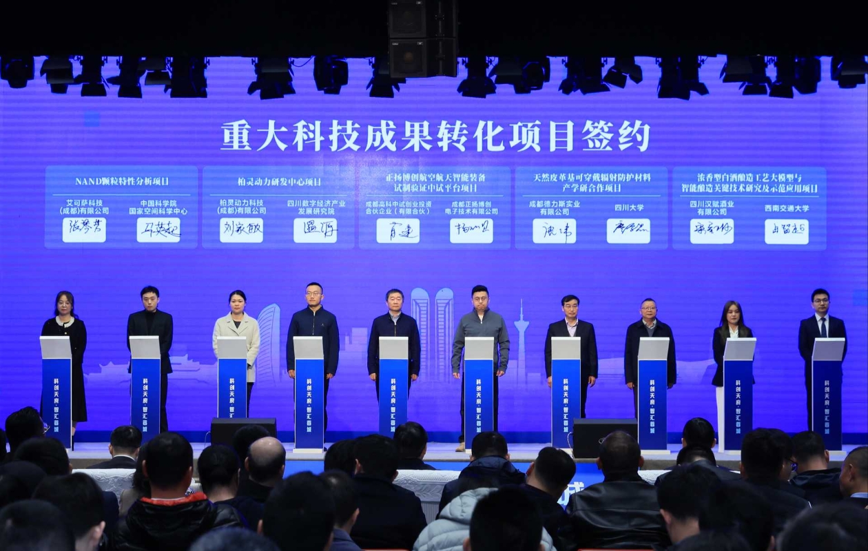 随后,5个重大成果转化项目签约,项目涵盖低空经济、航空航天、新材料、绿色食品、人工智能等领域。艾可萨科技(成都)有限公司与中国科学院国家空间科学中心空间天气效应中心合作的“NAND颗粒特性分析”项目将开展星载存储产品可靠性研究。