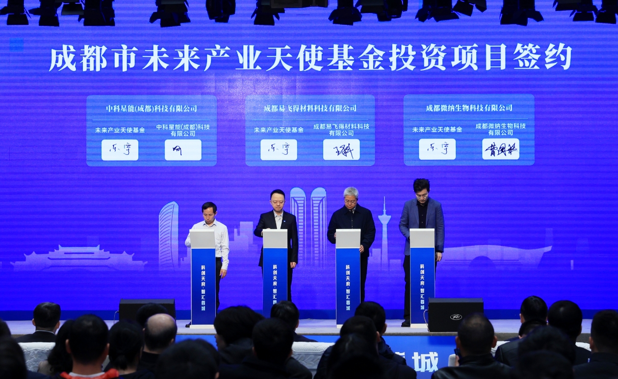 为了助力种子期、初创期科技企业成长壮大,成都推出未来产业天使基金,聚焦“9+9+10”现代化产业体系投早投小、长期投硬科技,推动原创性、颠覆性技术成果落地转化。活动现场进行了成都市未来产业天使基金投资项目签约,未来产业天使基金与中科星能(成都)科技有限公司、成都易飞得材料科技有限公司、成都微纳生物科技有限公司签约。