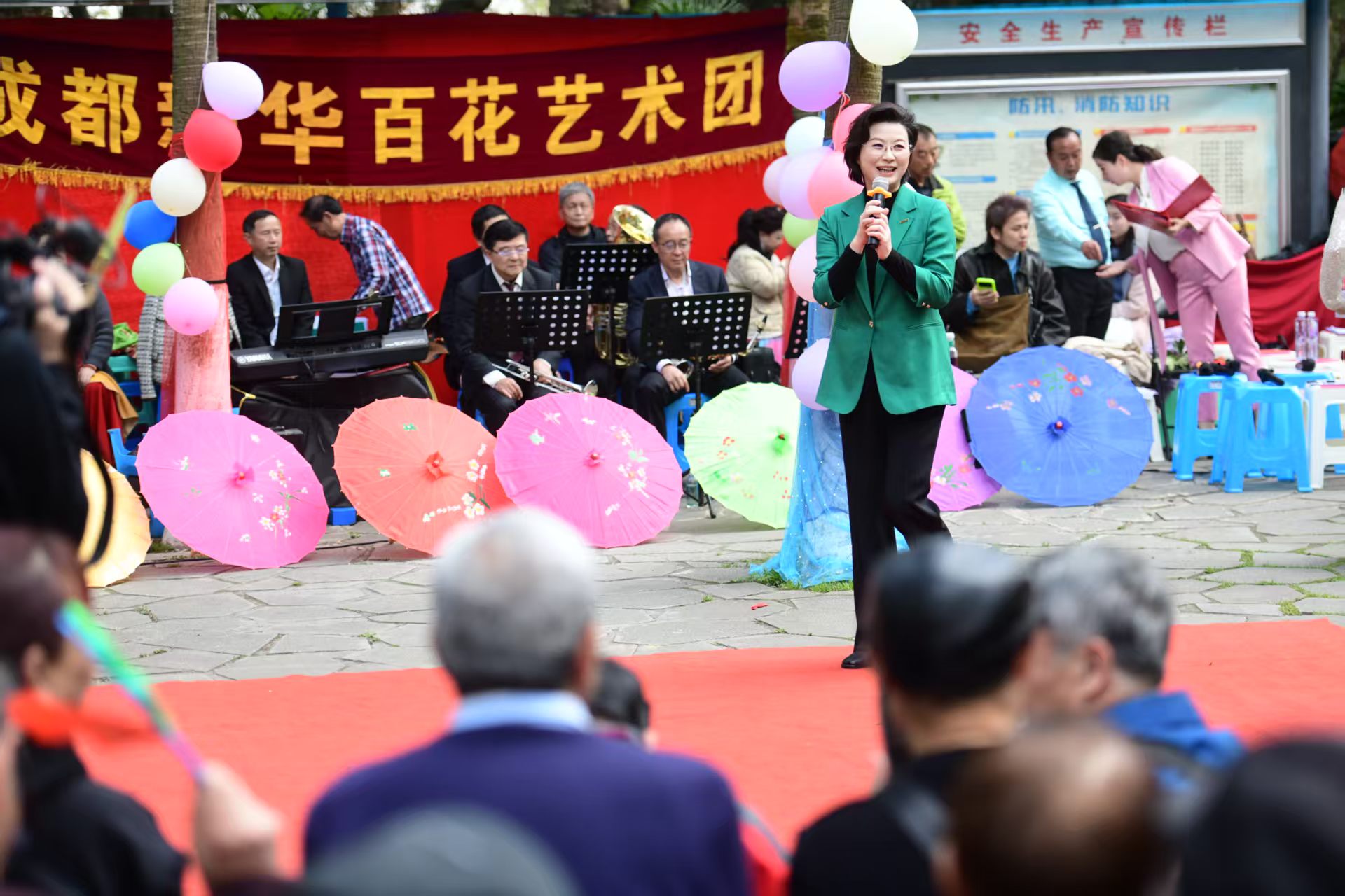 本次演出主要由成都新华百花艺术团参演,涵盖诗歌朗诵、唱歌、舞蹈、乐器演奏、脱口秀、二胡独奏、四川茶艺表演等。据悉,该艺术团长期扎根社区,常年坚持公益演出,如今已经成了成都基层公益演出的一道“靓丽风景线”。